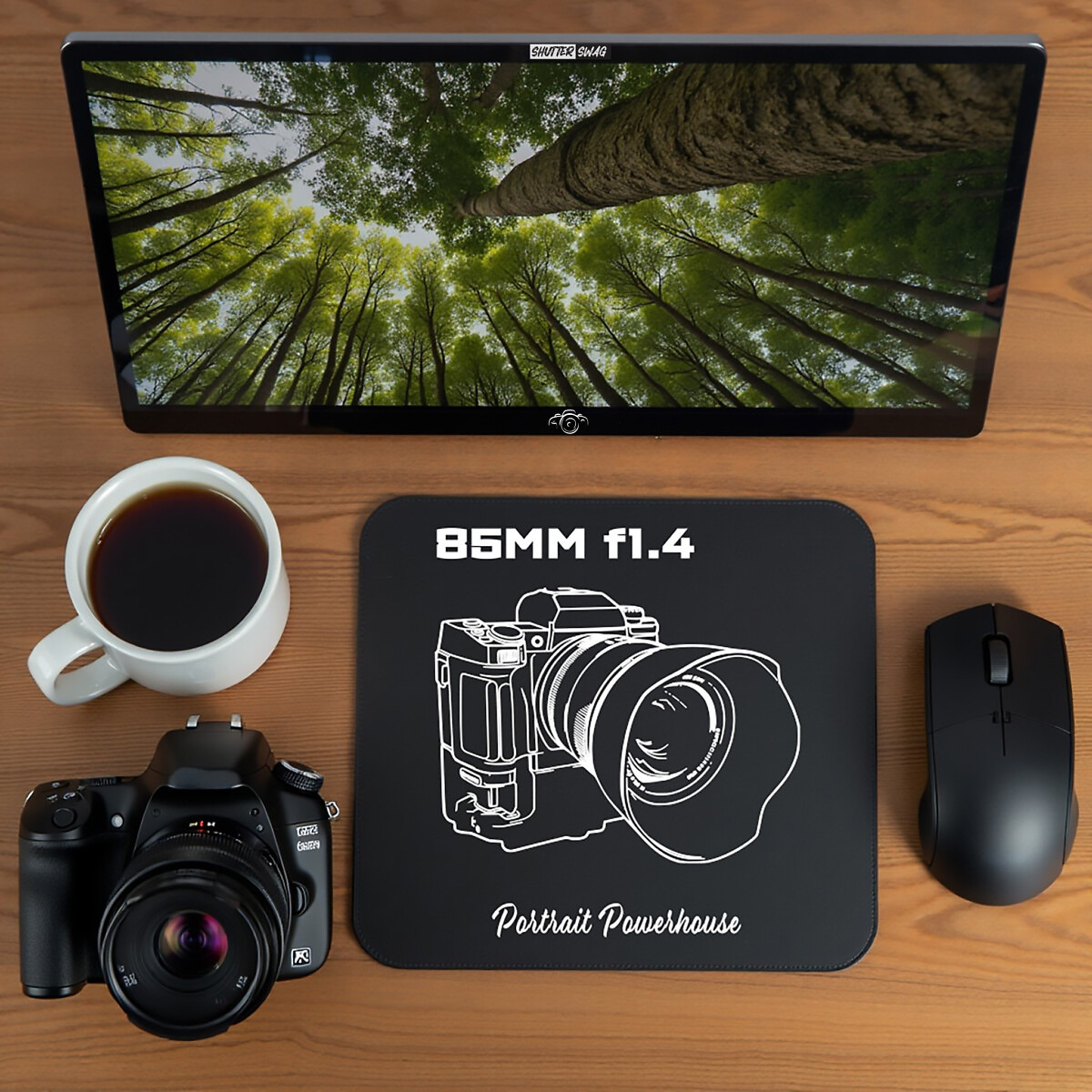 Bring your passion for photography to your desk with our 9 x 8 black mouse pads. Featuring our crisp white minimalist line drawing of various camera lenses and bodies (DSLR & mirrorless), these mouse pads are perfect for photographers and photography enthusiasts alike. Not just a functional accessory, it’s a subtle yet stylish way to show off your love for the craft, making every click a reminder of your favorite gear.